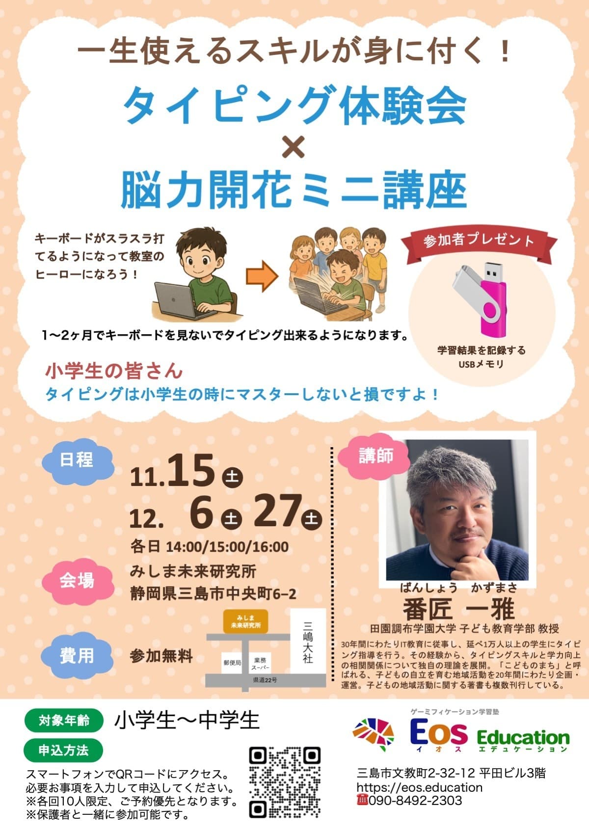 ゲーミフィケーション学習塾 イオス・エデュケーション(EOS Education) 〒411-0033 静岡県三島市文教町2−32−12 平田ビル3階